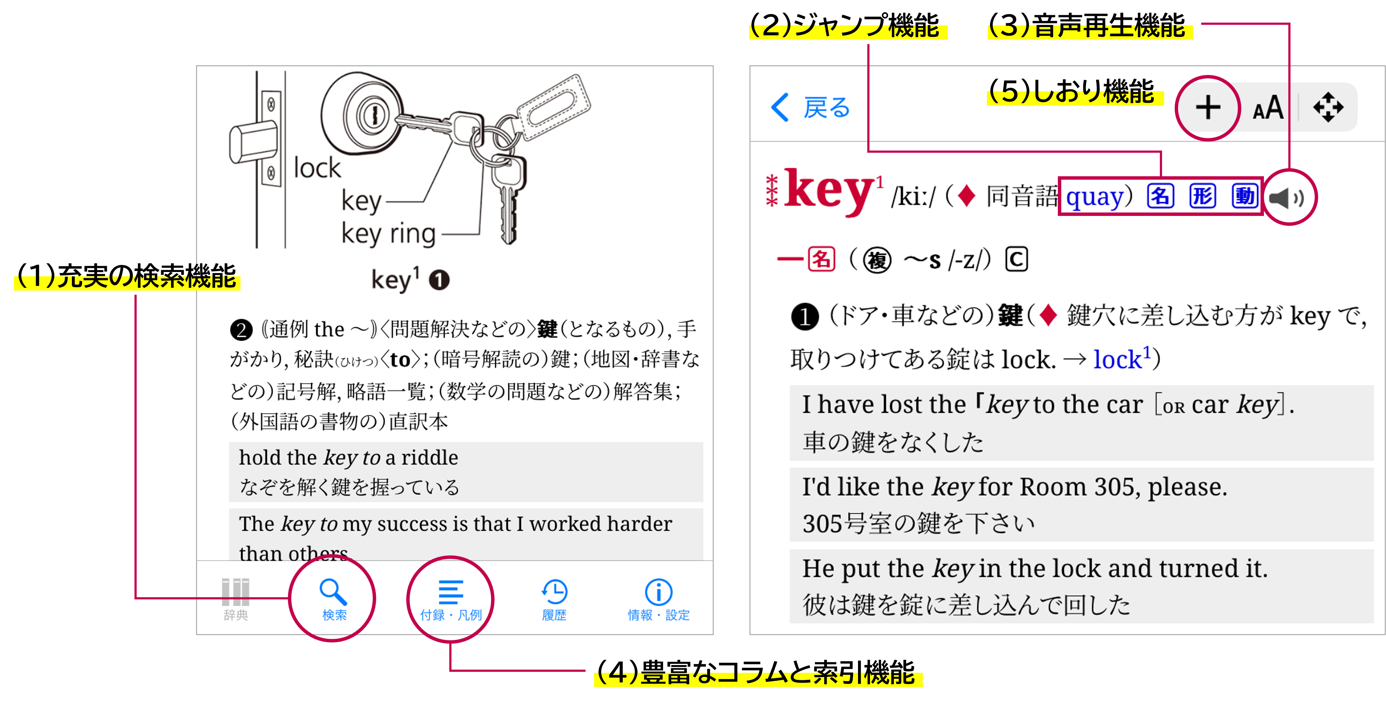 また,アプリならではの収録内容として,ほぼすべての見出し語に音声を付与 ※2。単語の発音を聞くことができます。