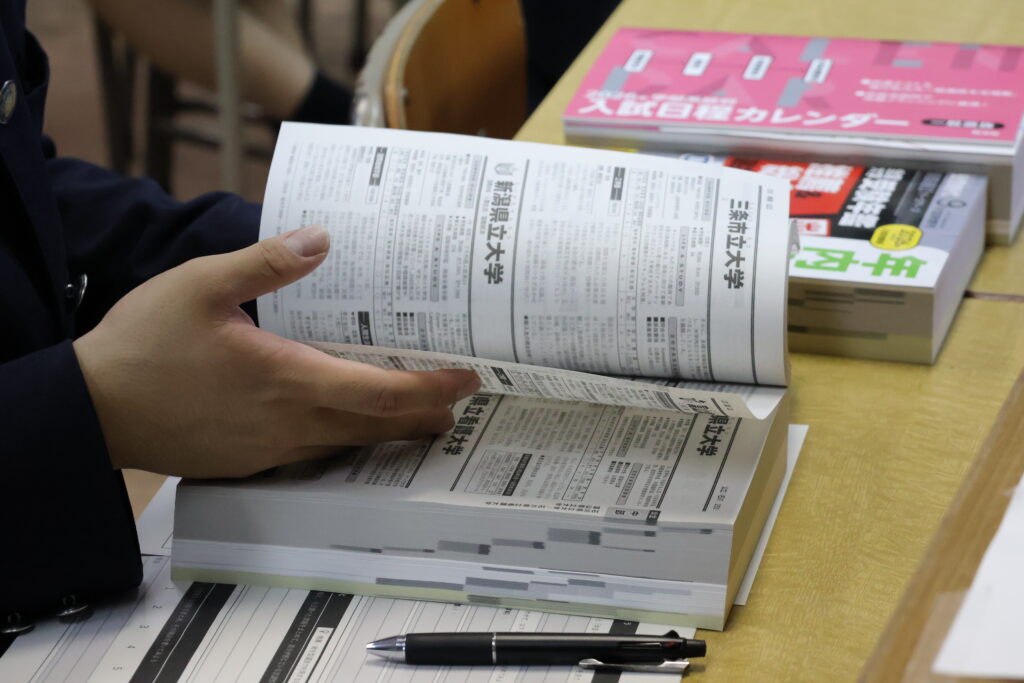 生徒たちは各大学ページを読みながら、気になる大学の出願資格や入試方式をワークシートにまとめていきました。