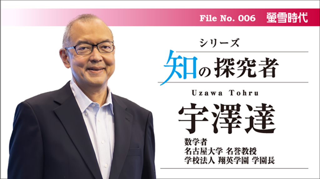 第六回目は、数学者の名古屋大学名誉教授・宇澤達先生にご登場いただきました。宇澤先生は、アメリカのエール大学で博士号を取得され、同窓生として入学志願者のインタビューにも携わってこられました。現在は、学校法人翔英学園の学園長を務めておられます。